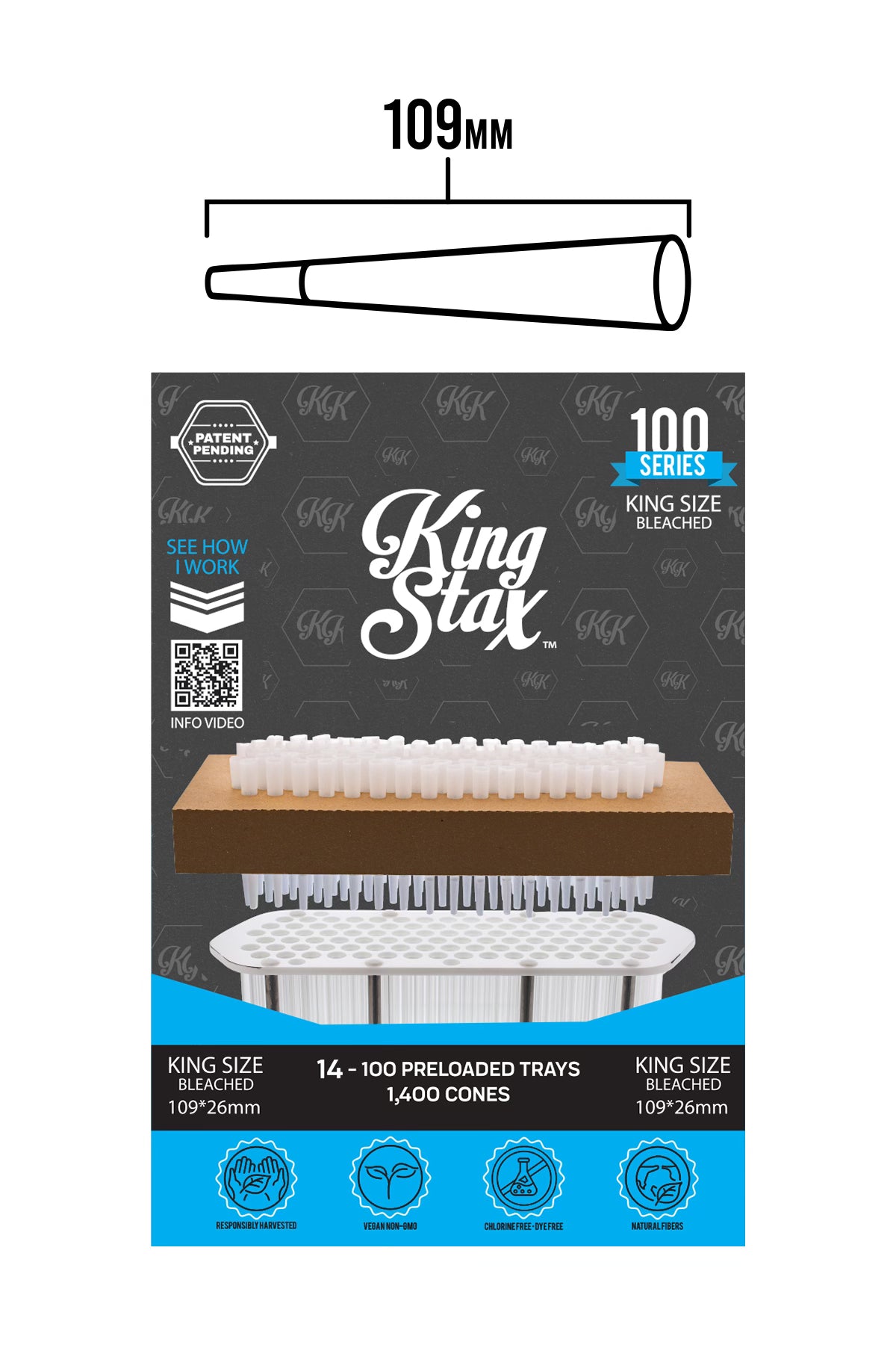 King Stax 100 Series – 109MM Cones (Bleached) – 1,400 Cones/box