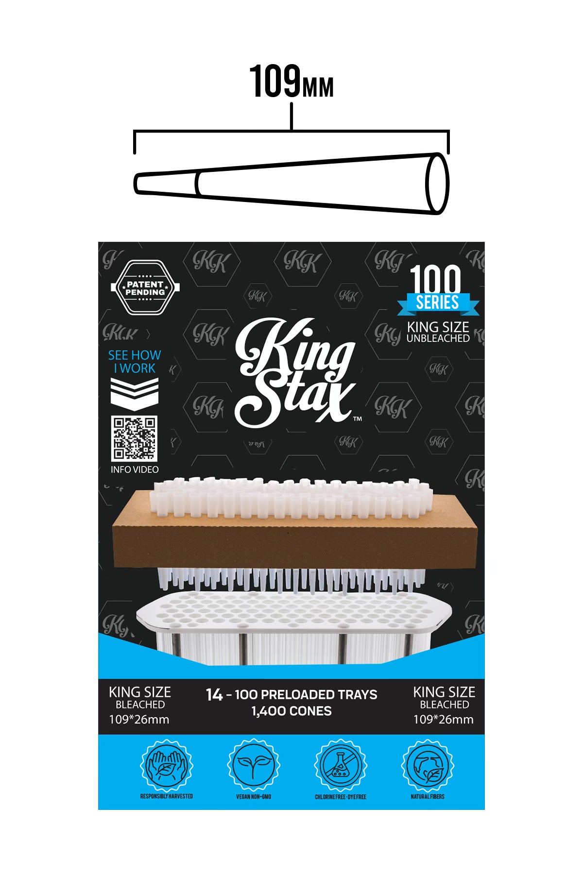 King Stax 100 Series – 109MM Cones (Unbleached) – 1,400 Cones/box